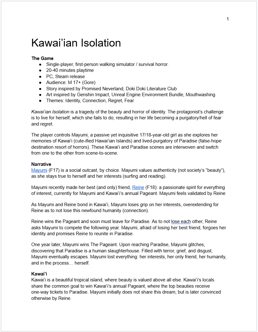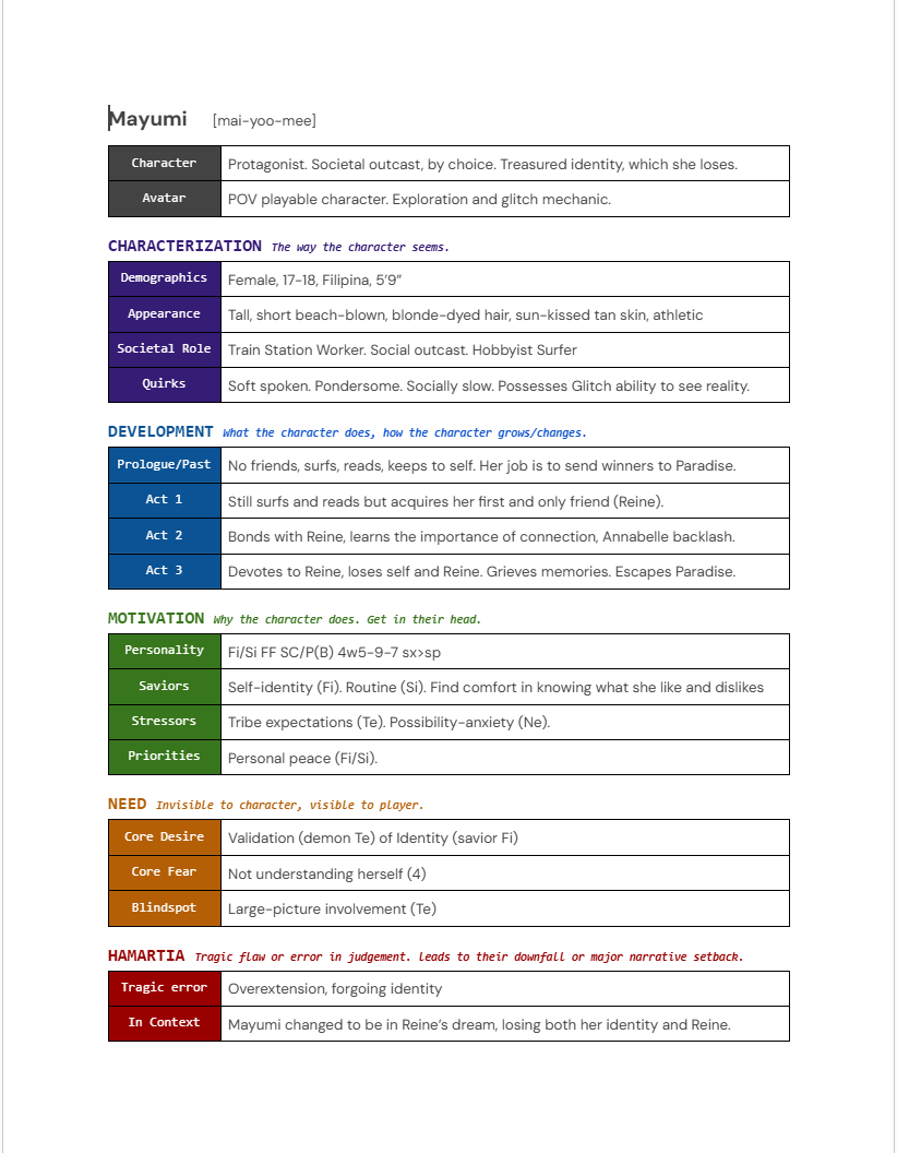 Maintained a living GDD, game whiteboard, and 4 character sheets throughout development.